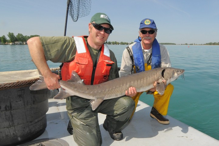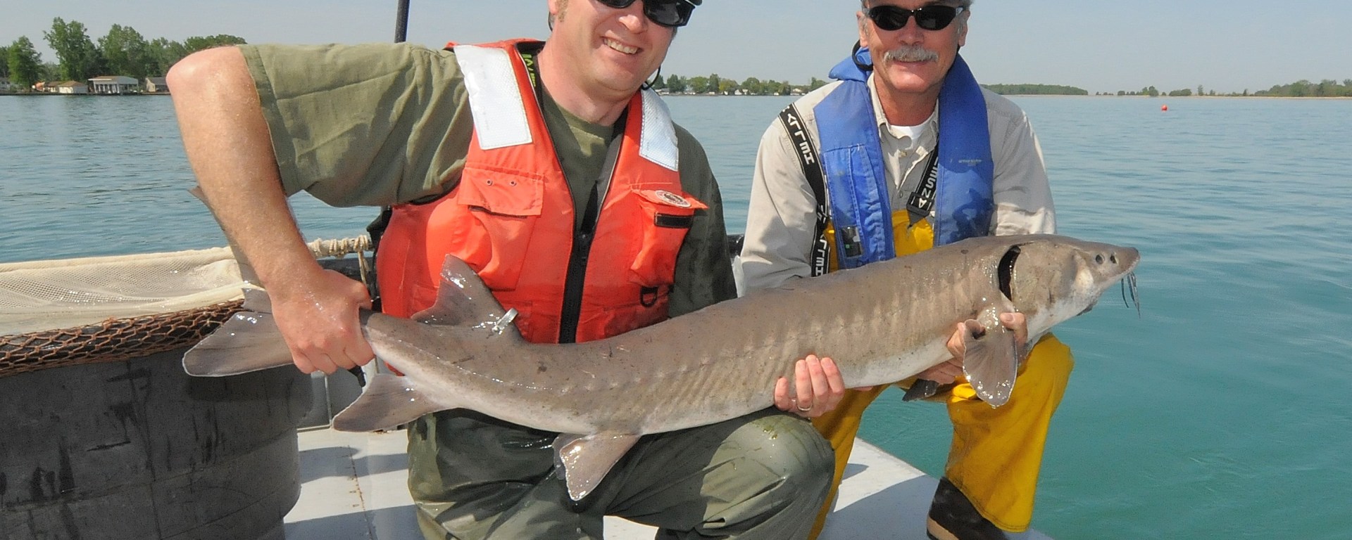 Over six years (2011 – 2016), movements of 268 lake sturgeon were continuously monitored across the Great Lakes using acoustic telemetry. Lake sturgeon were captured from four distinct locations along the HEC by longline and trapnet, with three of the four sampling locations being known spawning sites in the Detroit River, the lower St. Clair River, and the upper St. Clair River. Lake sturgeon were implanted with acoustic transmitters through a small incision into their body cavity, and released back into the system. Their movements were monitored throughout the HEC and broader Great Lakes region with a network of acoustic receivers, established and maintained in collaboration with the Great Lakes Acoustic Telemetry Observation System (GLATOS; http://glatos.glos.us).