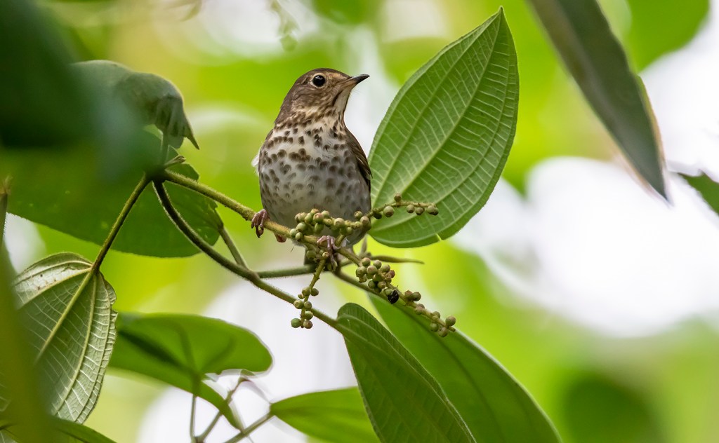 For the past five years, we have been researching Swainson’s Thrushes in shade-grown coffee plantations and forests in the eastern Andes of Colombia. Early in the morning of March 19, 2015, I captured a thrush in a mid-elevation forest, 200 km southwest of Bogotá. It was a bird born in the summer of 2014 and was spending its first winter in South America. From here on let’s call the bird “Pecas” (meaning ‘freckles’ in Spanish). He will carry a tiny backpack with a radio-transmitter from Colombia to North America. Upon release, Birds Canada’s vast Motus Wildlife Tracking System, an international research network that operates hundreds of automated radio telemetry stations across the Americas, tracked Pecas’ local movements 24/7 and his journey northwards in Spring.