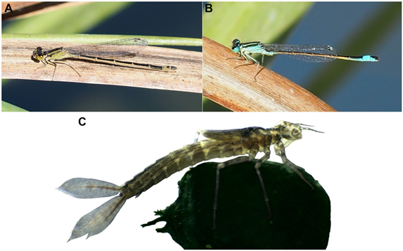 In a recent study that appeared in the Journal of Animal Ecology, we tested for adaptation in cold tolerance and in life history, behavioural and physiological traits and their thermal plasticity in the aquatic larval stage of the damselfly species Ischnura elegans during poleward range expansion (Vander Linden 1820). This species is a common damselfly species in Europe with its historical core range reaching from southern France to southern Sweden. It is currently showing a poleward range expansion in northern Europe. We reconstructed the thermal performance curves of life history (survival, growth and development rates), behaviour (food intake) and cold tolerance (chill coma recovery time) in the final larval stage of this damselfly when reared in the laboratory from eggs collected in the field. In this common-garden experiment, we studied larvae from three edge and three core populations in the Swedish expansion region.