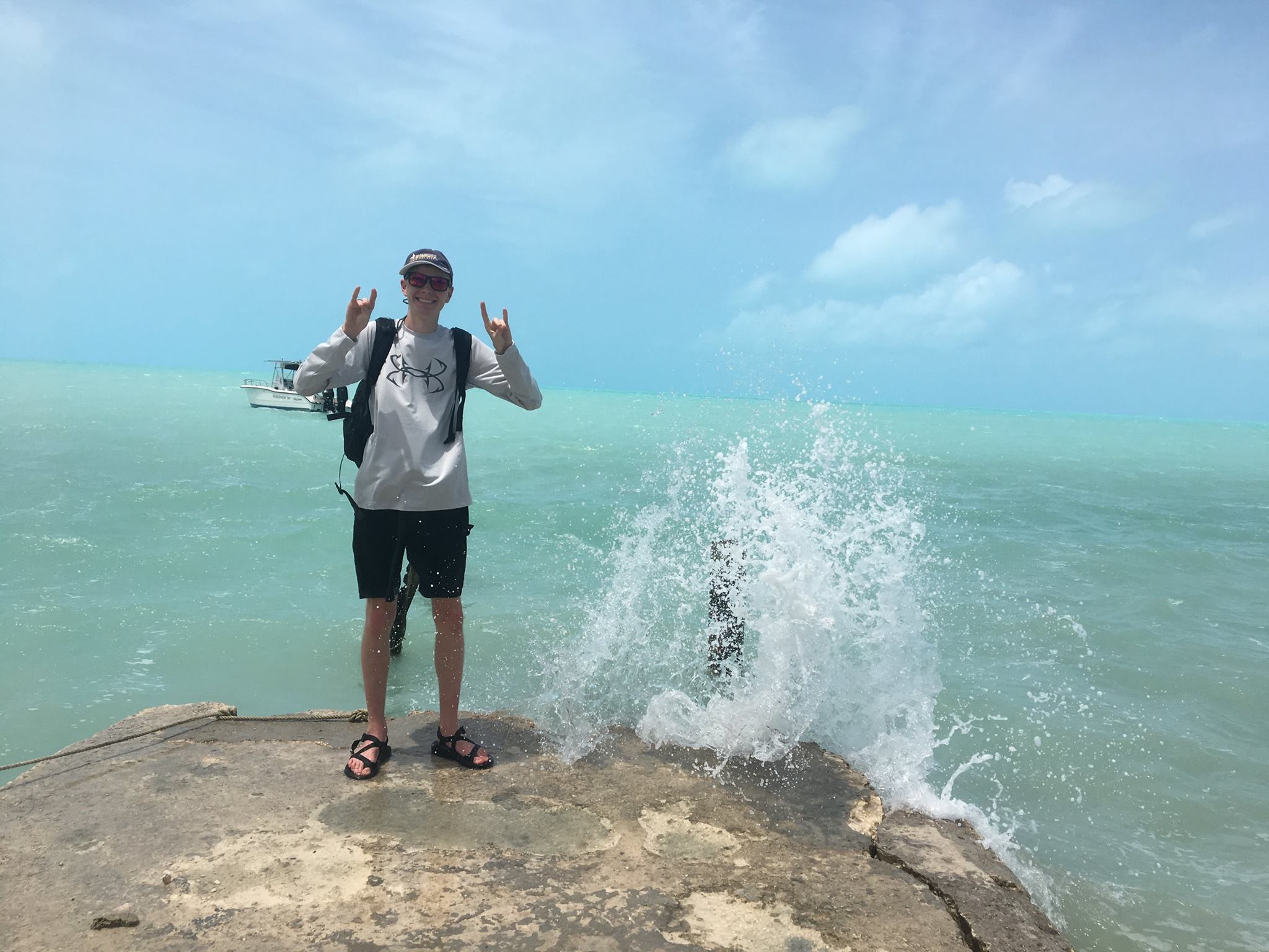 Our first day of field work was one of the biggest wake-up calls I have ever experienced. When one thinks of The Bahamas, your first thought is probably of white sandy beaches, fancy resorts, and crystal clear water, and while parts of the island certainly do look like that, it was not the case where we were on Day 1. Our first field site greeted us with temperatures in the high 90s, jagged rocks everywhere, the relentless biting of “doctor flies,” and a ubiquitous plant called poison wood (which you can tell by the name, was not a fun time). But with positive attitudes and hard work our team quickly got into a routine and our field work got smoother and smoother. It was actually the harsh field conditions that really brought us closer together and gave us some hilarious stories, like finding an abandoned bar to set up our behavioral assays beside an unfragmented tidal creek, and having plenty of interesting interactions with local people.