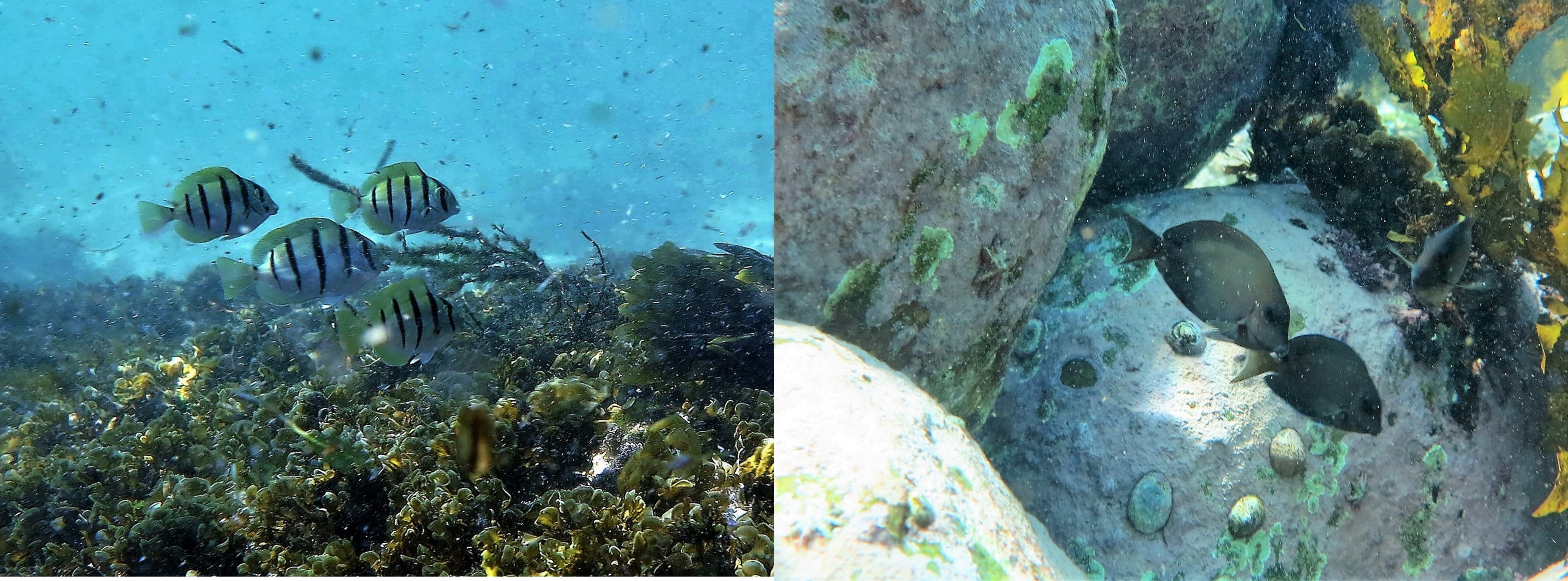 The key to these two questions may depend on the behavioural flexibility of both tropical and native temperate fish. In this case, their ability to modify their behaviour, is a potential mechanism adopted to adjust to new environments and novel species interactions under climate change. To better understand the importance of behavioural modification in the future ocean, we would like to introduce you to the species Abudefduf vaigiensis (popularly known as the Indo-Pacific Sergeant). The Indo-Pacific Sergeant is an ordinary tropical coral reef fish that has been observed year after year venturing into Australians temperate reefs during warmer seasons (Jan-May).