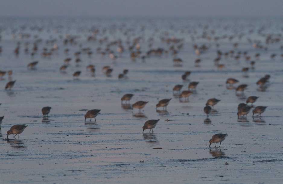 There is a place on earth where life not only revolves around day and night but also around the tidal cycle. Intertidal mudflats are dynamic and fascinating places that are completely submerged for part of the day and exposed during others. For the millions of shorebirds that live in these areas, this means that their daily food source, consisting of shellfish, worms, shrimp, and other invertebrates, is only available when the tide is out. At low tide, shorebirds fly and distribute themselves around the mudflats in search of their food. Red knots are one of the many species of migratory shorebirds that forage on intertidal mudflats during the winter. Thousands of red knots forage together at low tide, and at first glance, all red knots seem to be acting the same while foraging. However, through more detailed examination, we see that red knots differ individually in how they catch their prey and what they eat. But why do they differ in what they eat?