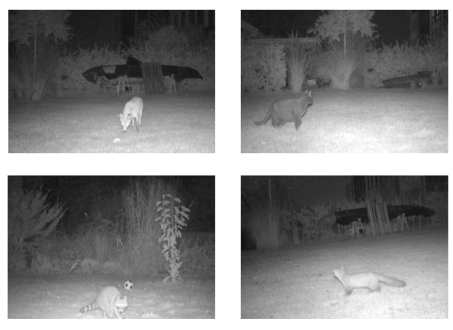 Based on the camera-trap data obtained from the citizens, we first assessed the spatial overlap of foxes, raccoons and martens (we considered that cats were spatially associated with the garden of their owners). To do so, we first assessed the effect of environmental variables on their presence in gardens (i.e. if they were detected at least once during the sampling period) and use intensity of gardens (i.e. how many pictures of them were taken during the sampling period). We assessed whether the SARS-CoV-2 lockdown had an effect on presence and use intensity of gardens and found that species were more present in gardens and displayed a higher use intensity in gardens during the SARS-CoV-2 lockdown period. As domestic cats are an infamous source of disturbance for wildlife, we tested for the effect of cats on presence and use intensity of gardens, and found that raccoons, the invasive species, displayed a positive response to cats, while foxes, the native species, displayed a negative trend towards cats. After assessing the environmental effects on presence and use intensity of wildlife gardens, we estimated the association between each species and found that all three wild species were positively associated in both presence and use intensity of gardens.