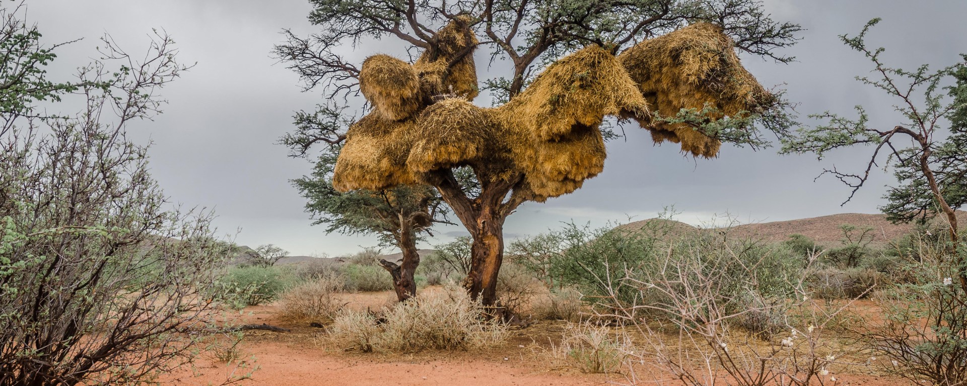 This blog post is provided by Anthony M. Lowney and Robert L. Thomson from the Fitzpatrick Institute of African Ornithology, University of Cape Town and tells the #StoryBehindThePaper for the paper ‘Ecological engineering across a spatial gradient: Sociable weaver colonies facilitate animal associations with increasing environmental harshness’, which was recently published in the Journal of Animal Ecology.