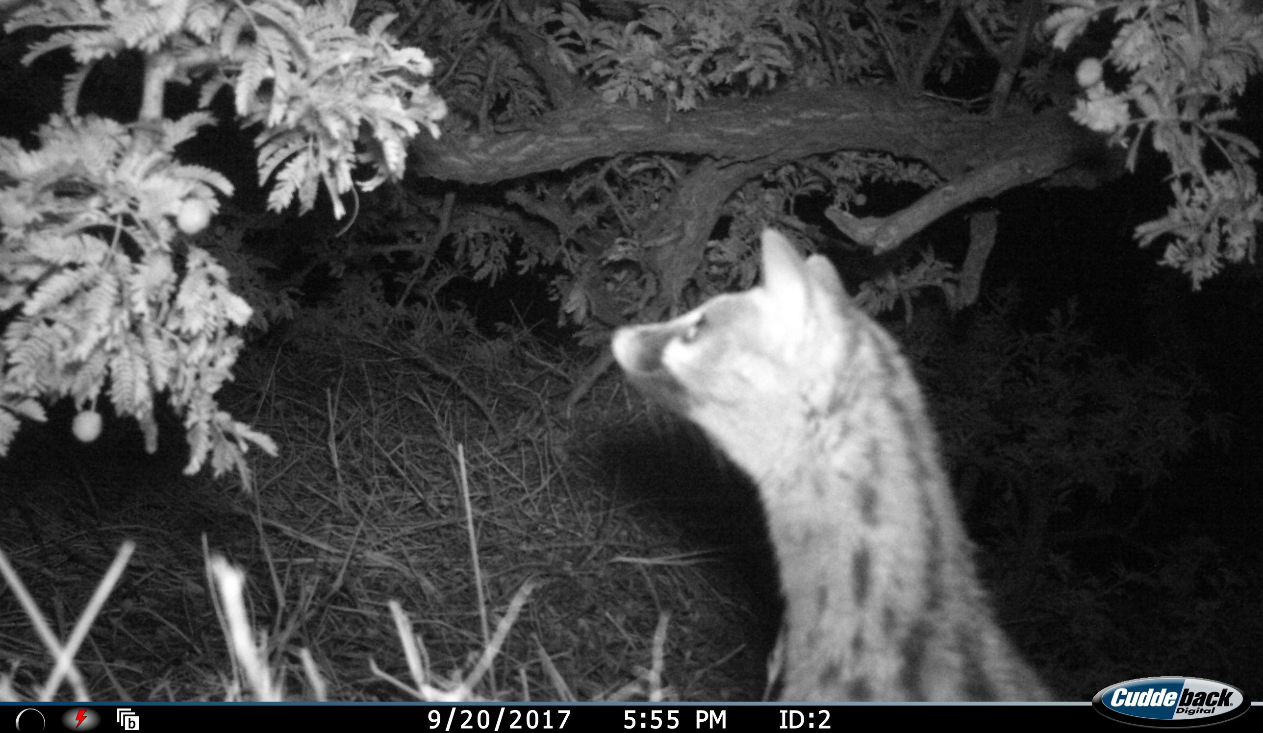 Our previous study in this system tested if the importance of weaver colony resources changed over time at our main study site Tswalu Kalahari. We found that weaver colonies created localised biodiversity hotspots and that this was maintained across the seasons. We found fascinating evidence that large mammals used colonies for shade, foraging, and territorial behaviours (scent marking, fighting). We also found an overwhelming increase in the number of arboreal mammals using the top of weaver colonies, with species richness being 36 times greater on trees with colonies compared to trees without. Animals climbing to the top of the platforms included small-spotted genet (Genetta genetta), slender mongoose (Galerella sanguinea), cheetahs (Acinonyx jubatus), and African wild cats (Felis lybica). Clearly these sociable weaver colonies were an important resource to animal communities in these environments, but we wanted to check further how the importance of weaver colonies to local animal communities changed over a large spatial gradient.