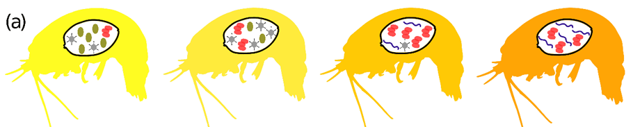 The microbiome of different individual parasites has a different composition and abundance of microbes, with great variation even among individual parasites of the same population. This is caused by processes like acquiring microbes from different sources from the previous generation (such as with diet), competition among lineages within a parasite, and because not all microbes from the parent parasite will succeed in being transferred to its offspring. Such variation in the microbiome of individual parasites may be linked to variability in the levels of parasite-induced host phenotypic manipulation (Figure 3). That is, parasites with different microbiomes may have different impacts on the phenotype of their hosts.