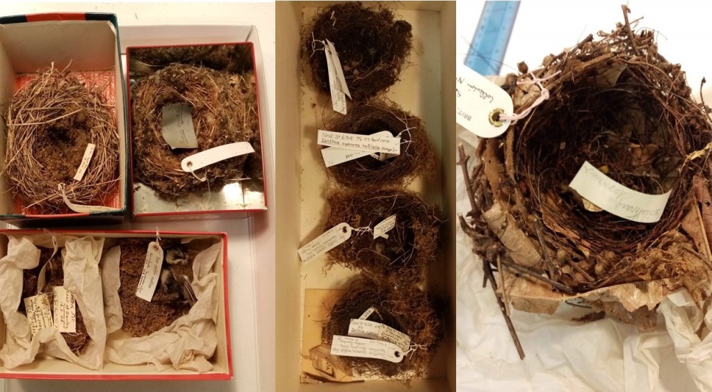 To understand what makes nests bigger or smaller at the macro scale, I needed measurements of nest sizes from a variety of species breeding in different environments. Even though passerines constitute more than half of all bird diversity, the majority of them build cup-shaped nests that are comparable in dimensions across many species. Some measurements I was able to get from the literature. For other species, I travelled to the Natural History Museum at Tring and measured 1,401 cup nests from their collections (Fig. 2). I then assessed how nest size ties in with a range of ecological and life-history factors that characterise each species. I mainly focused on variation in the outer cup volume that best captures the amount of material included in the nest – but I also measured the volume of the inner cup that holds the developing eggs. As part of our analyses, we controlled for the potential effect of phylogeny, that is, the fact that more closely related species construct nests that are more similar to each other in size than distantly related ones. Altogether, we analysed data from 1,117 species of passerines from environments as varied as tropical forests, deserts or taiga.