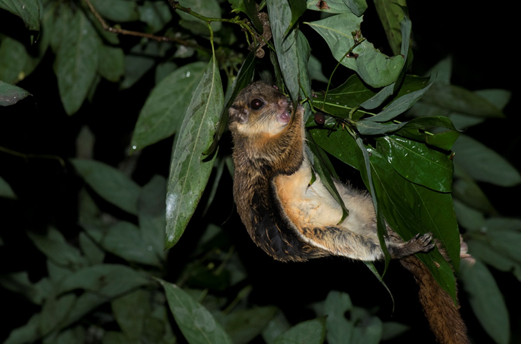 Species have developed multiple mechanisms to adapt to living conditions at certain vertical strata. We grouped them into three main categories: climatic adaptation, dispersal capacity, and specialised life history (Fig. 2). With changes in microclimate from the ground to the canopy, the physiology, morphology, and behaviour of organisms can also vary to adapt to those changes. For instance, canopy species tend to have a broader physiological tolerance for living with highly variable environmental conditions than ground-dwelling species. Vertical differences in climatic-related morphological traits such as body size and body colour have also been observed in animals such as frogs and ants. To overcome the challenges of moving vertically, the movement of many arboreal animals involves aerial behaviours such as flying, parachuting, and gliding. For instance, some mammals and reptiles such as Belomys pearsonii Gray (see Fig. 3 below) and Chrysopelea ornate (see Fig. 4 below) move across tree crowns by gliding. For tree frogs like Rhacophorus dennysi (see Fig. 5 below), the adhesive toe pads can help them to grip and attach on the smooth surface of leaves and branches. Some species “migrate” from the ground to the canopy within their life cycle and make full use of different microhabitats and microclimatic conditions provided by vertical tree structures.