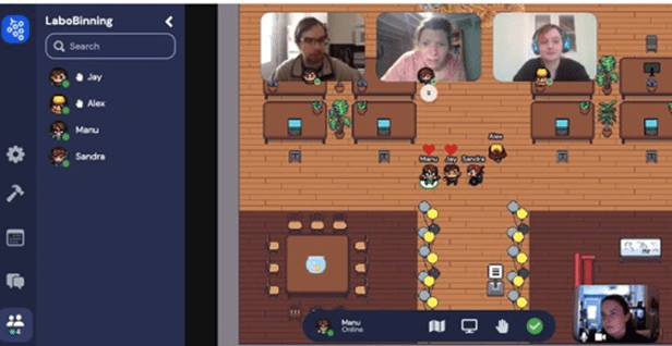 Figure 2. Our lab virtual office space (Shown in the screenshot are J. De Bonville, S.A. Binning, A. Kack and E. Chrétien)