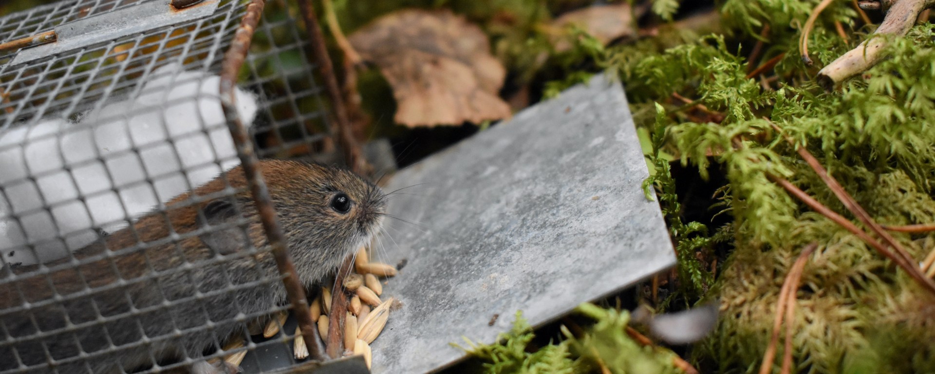 Our research team is investigating how habitat quality (specifically, food abundance) and infection with parasitic worms affect the behaviour of wild bank voles. The bank vole (Clethrionomys glareolus) is a small rodent common throughout central and northern Europe and is often used as a model organism in field studies.