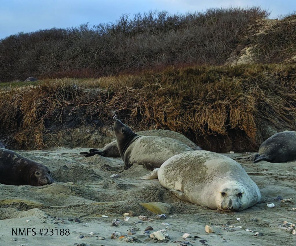 During spring of that same year, I was a teaching assistant for “Field Methods for Large Marine Vertebrates,” an undergraduate field course taught at UC Santa Cruz by Professor Roxanne Beltran and Dr. Patrick Robinson. This class is a course-based undergraduate research experience, or CURE: fourteen students participate in fieldwork at Año Nuevo Reserve, where they contribute to a long-term study of elephant seals established by Professors Burney LeBoeuf and Dan Costa. Students generate a set of questions, and work together to analyze data, perform literature reviews, and write up their findings. As I took students to search for flipper tags among the dunes, we kept an eye out for the famous 1885, but never saw her.