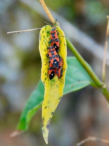 In those days, the minds of young ecologist were primed by ideas from island biogeography and metapopulation dynamics. Here was a nice patchy system amenable to study. One of the few insects feeding on the plant was Lygaeus equestris, a beautiful red and black seed-feeding bug. How was the insect distributed among the patches, what were its movements and how were patches populated? The large bug was easy to mark with a marking pen.