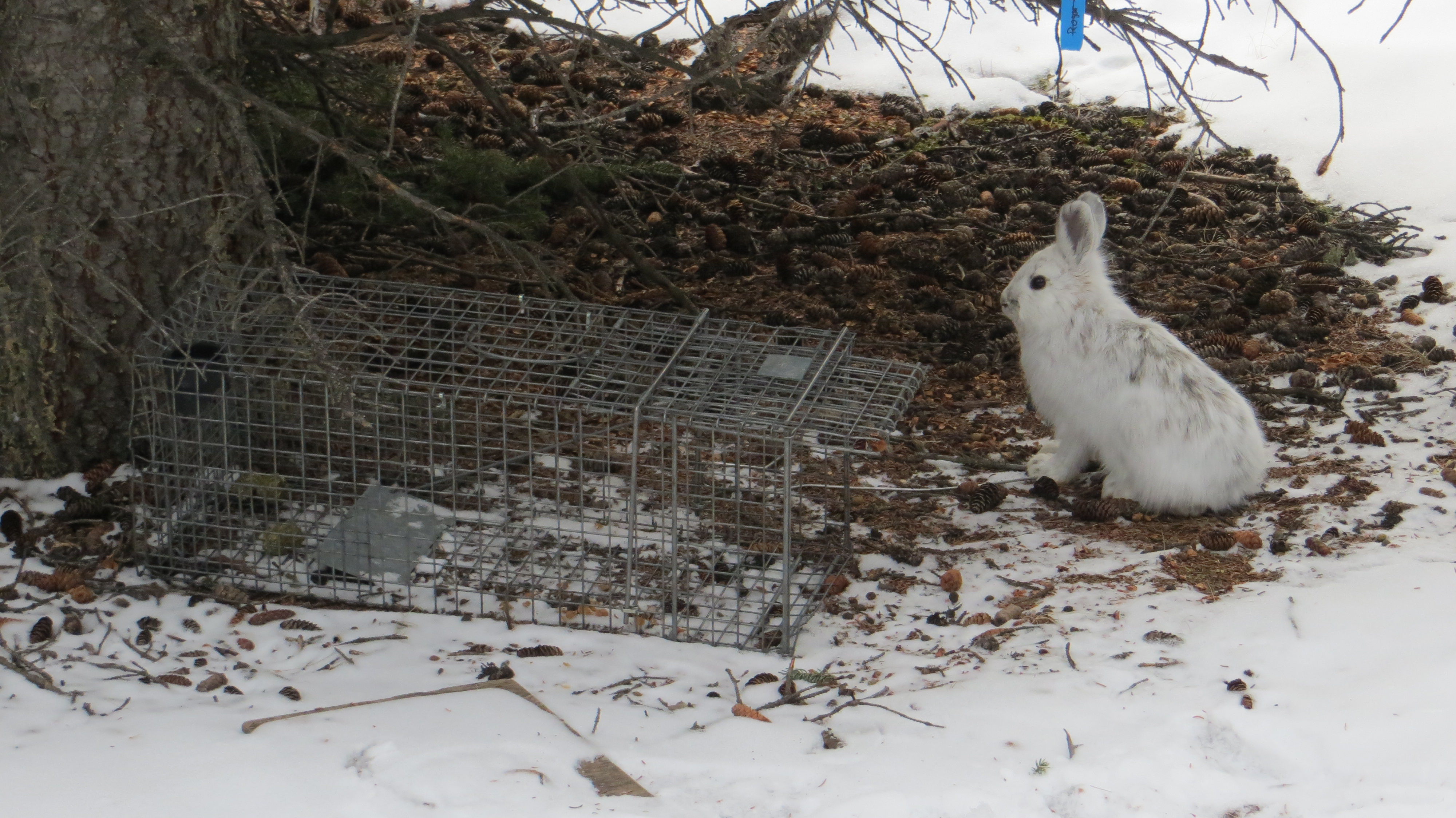 The low phase of the cycle (lasting 2-3 years) is poorly understood because low hare and predator numbers make sampling by mark-recapture difficult. On a study area of 60 ha in the peak of the cycle there may be 150 hares to capture and mark, while in the low of the cycle there may be only 1-4 hares. Despite our efforts in the low phase we cannot predict when the population will begin to rebound, simply that it always will.
