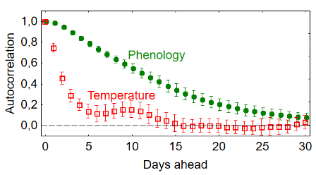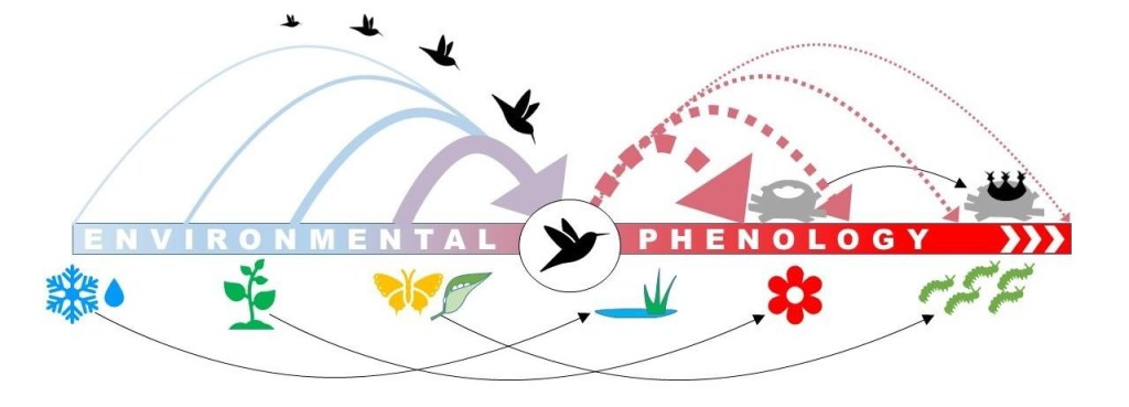 It is known that in a boreal climate, the development of any spring process—snowmelt, leaf budding, insect activity and their consumers—depends on temperature. Crossing a threshold provides the initial impetus, the accumulated temperature sum determines the rate of development, and then it proceeds independently, according to its own schedule. Thus, sequentially, one after another, all spring processes are initiated, including those that determine food availability for birds. The combination of parallel phenological processes forms the environmental phenology. It depends on the temperature of the previous period, although long-standing deviations are gradually “forgotten.” The same is true for the future: environmental phenology predicts development, but the accuracy of its results decreases over time.