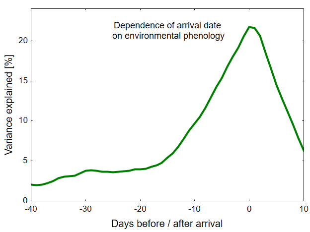 To test these hypotheses, we compared thousands of annual deviations in arrival dates with deviations in environmental phenology. It turned out that these deviations explain migration timing better than other climate variables, specifically on the day of arrival.